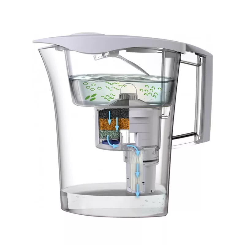 A speciális technológiájú szűrő kiszűri a baktériumokat és megszünteti a víz zavarosságát. Kiszűri a baktériumok 99,999%-át. A csapvíz zavarossági szintjétől függően akár 12 hónapig, vagy 1000 liter víz szűréséig is használható. Az eredmény: tiszta és biztonságos víz.